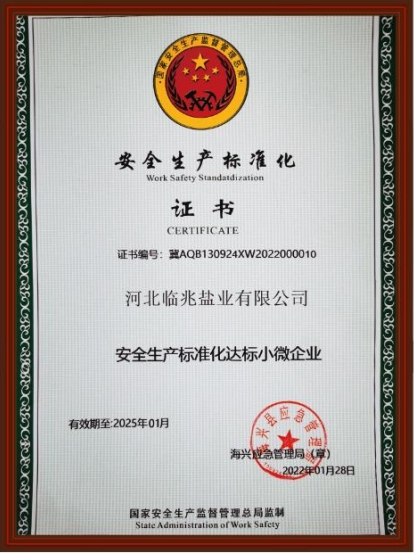 河北临兆盐业有限公司坐落在河北省东南部风景秀丽的渤海湾,北临黄骅港和天津、渤海新区,交**利,运输方便快捷。公司始建于2014年3月,是一家集科研生产、销售、技术服务于一体的从原盐加工到生产饲料盐到生产舔砖的链条式循环经济发展的现代化民营企业。公司注册资本1000万元,占地面积9990平方米。公司基础设施完善,粉洗干年设计生产能力达10万吨,年产饲料盐5万吨,舔砖生产5万吨。公司拥有专业的技术人员团队和先进自动化水平设备。